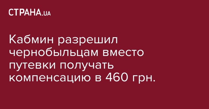 Правительство разрешило пострадавшим вследствие Чернобыльской катастрофы лицам получать денежную компенсацию в размере 35% прожиточного минимума вместо путевок на оздоровление.