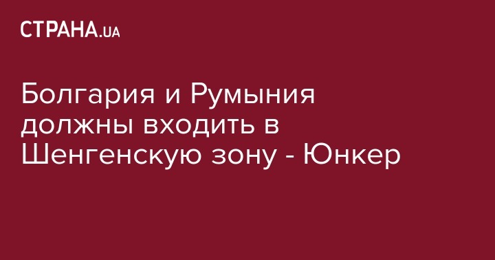 Председатель Европейской комиссии Жан-Клод Юнкер подтвердил свою позицию, что Болгария и Румыния должны входить в Шенгенскую зону, и не сомневается, что так оно и будет, про это сообщает "Интерфакс- Украина".