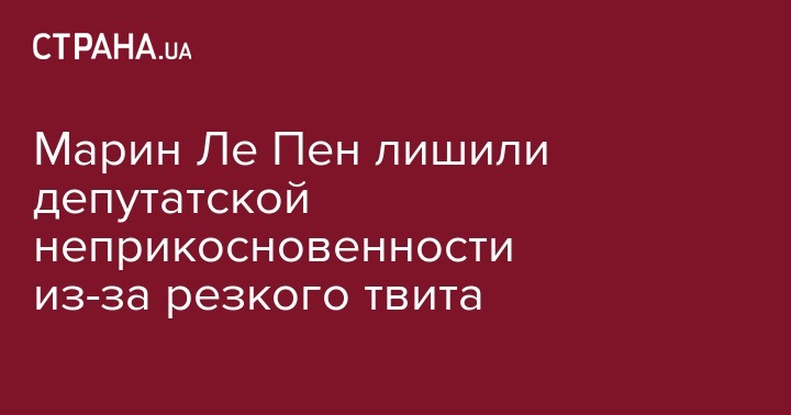 Марин Ле Пен лишили депутатской неприкосновенности из-за резкого твита