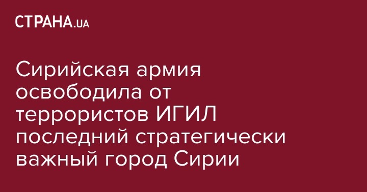 Сирийская армия освободила от террористов ИГИЛ последний стратегически важный город Сирии