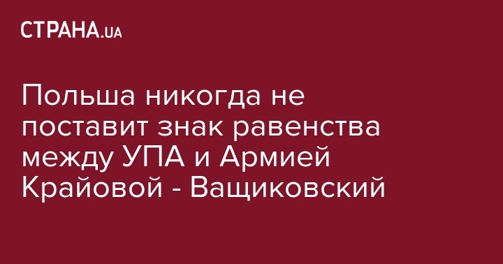 "Мы никогда не согласимся поставить знак равенства между УПА и Армией Крайовой, а это мы порой слышим от отдельных украинских собеседников", - сказал Ващиковский.