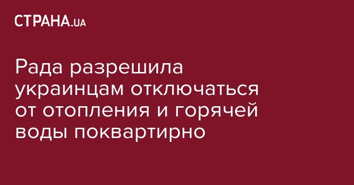 Принятый сегодня Верховной Радой новый закон о ЖКУ позволит владельцам квартир в многоквартирных домах отключаться от сетей централизованного отопления и снабжения горячей водой. Об этом говорится в тексте закона.
