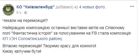 Как сообщили в пресс-службе "Киевзеленстроя" в Facebook, сославшись на результаты голосования в соцсети. В композиции доминируют теплые тона, а центральное украшение ярко-красного цвета напоминает трезубец.