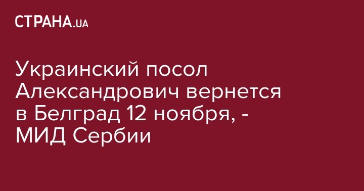 Украинский посол Александрович вернется в Белград 12 ноября, - МИД Сербии