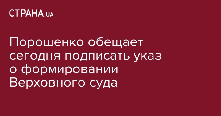 Президент Петр Порошенко анонсирует сегодня подписание указа о завершении формирования Верховного суда.
