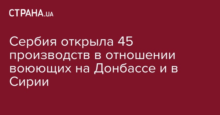 В Сербии с конца 2014 года правоохранители возбудили 45 уголовных дел в отношении наемников, принимающих участие в боевых действиях за рубежом, в том числе и на Донбассе. Об этом сообщает Европейская правда