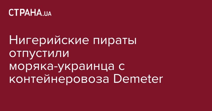 Шестеро моряков, которых 21 октября взяли в плен пираты у берегов Нигерии, отпущены на свободу и чувствуют себя хорошо. Об этом сообщает немецкая судоходная компания Peter Döhle Schiffahrts-KG, которой принадлежит захваченный контейнеровоз Demeter, передает Deutsche Welle.