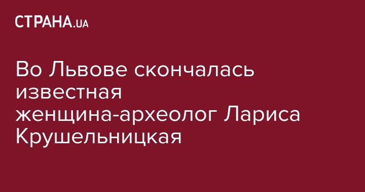 Во Львове на 89-м году жизни умерла известный украинский археолог, библиотековед, доктор исторических наук, профессор Лариса Крушельницкая. Об этом сообщает пресс-служба Львовского городского совета.
