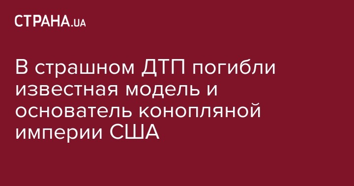 В страшном ДТП погибли известная модель и основатель конопляной империи США