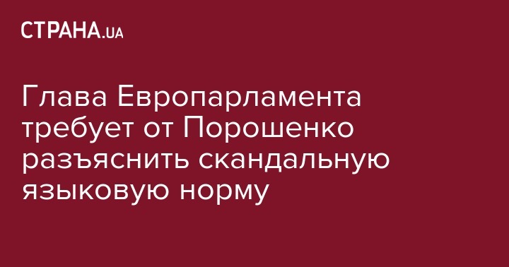 Председатель Европарламента Антонио Таяни направит президенту Украины Петру Порошенко требование разъяснить содержание скандальной языковой нормы в законе об образовании.