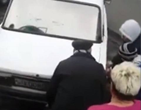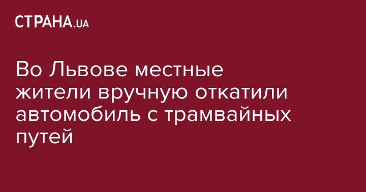 Во Львове местные жители вручную откатили автомобиль с трамвайных путей