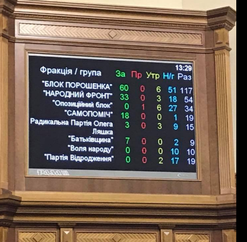 "Еще меньше голосов, чем в четверг. Вся риторика президента Порошенко о желании создать этот суд не стоит выеденного яйца. За отзыв, что открыло бы дорогу президентскому закону, не голосовало окружения Порошенко - Кононенко, Березенко, Князевич, Дубневич - хотя были в зале. Они либо вытащили карточки и обозначены как отсутствующие, или просто не дотянулись до кнопки", - написал Лещенко.