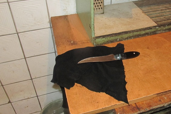 На месте изъяли одежду с пятнами крови и кухонный нож. Мужчина задержан в порядке ст. 208 Уголовно-процессуального кодекса Украины.