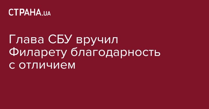 За значительный личный вклад в дело утверждения и укрепления государственной безопасности Украины Василий Грицак вручил Филарету - Благодарность с отличием.