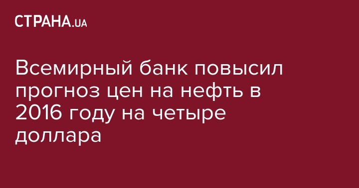 Всемирный банк повысил свой прогноз цены на нефть на $4 — с $37 до $41 за баррель. Об этом говорится на сайте финансовой организации, об этом сообщается на сайте финансовой организации.