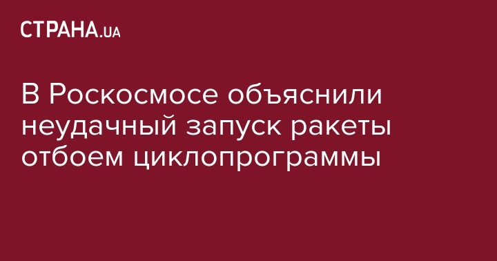 В Роскосмосе объяснили неудачный запуск ракеты отбоем циклопрограммы