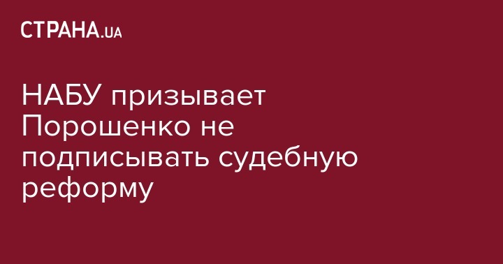 Национальное антикоррупционное бюро Украины (НАБУ) призывает Петра Порошенко не подписывать закон о судебной реформе. Об этом сообщает пресс-служба НАБУ.