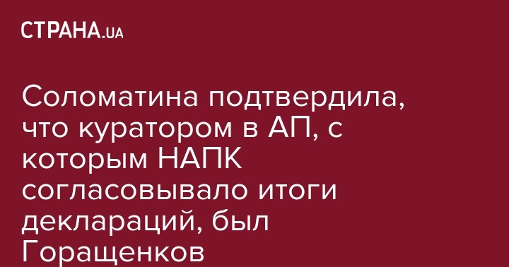 Соломатина подтвердила, что куратором в АП, с которым НАПК согласовывало итоги деклараций, был Горащенков