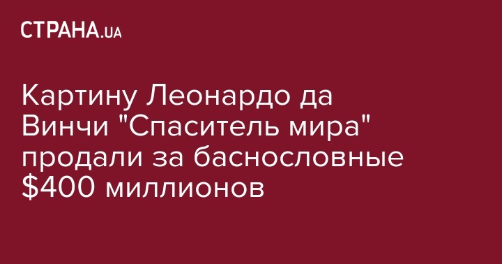 Картину Леонардо да Винчи "Спаситель мира" продали за баснословные $400 миллионов