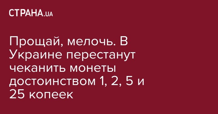 Прощай, мелочь. В Украине перестанут чеканить монеты достоинством 1, 2, 5 и 25 копеек