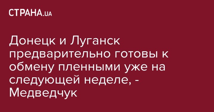 Донецк и Луганск предварительно готовы к обмену пленными уже на следующей неделе, - Медведчук
