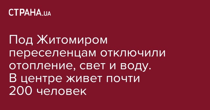 В коллективном центре для переселенцев в Коростышеве Житомирской области, где проживает 188 человек, вчера утром, 15 ноября, отключили свет, отопление и водоснабжение. Об этом "Стране" рассказал один из жильцов центра Арзу.
