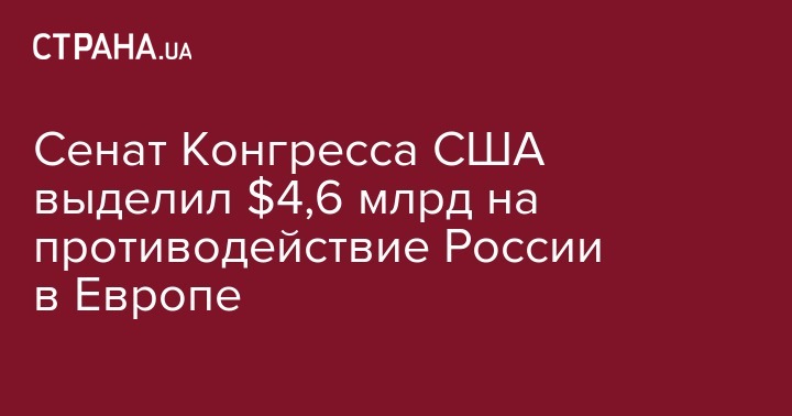 Сенат Конгресса США сегодня, 17 ноября принял законопроект о финансировании Минобороны страны в 2018 году, в который была включена статья о выделении средств на "противодействие России в Европе". Голосование проходило по упрощенной ускоренной процедуре, текст направлен на подпись президенту США. Об этом пишет "ТАСС".