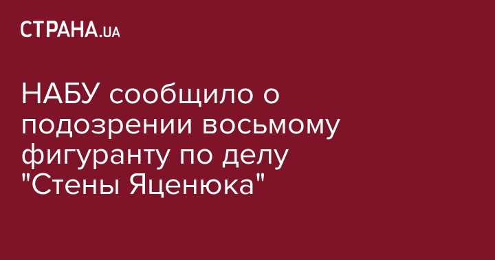 НАБУ сообщило о подозрении восьмому фигуранту по делу "Стены Яценюка"