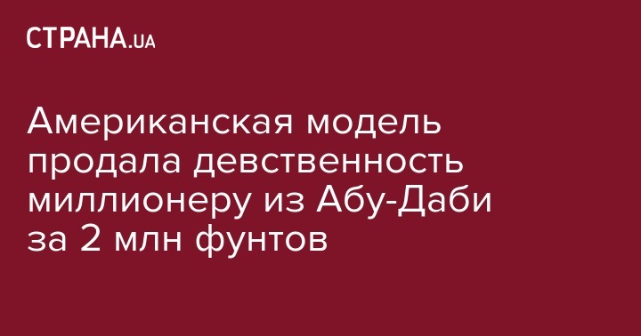 Американская модель продала девственность миллионеру из Абу-Даби за 2 млн фунтов
