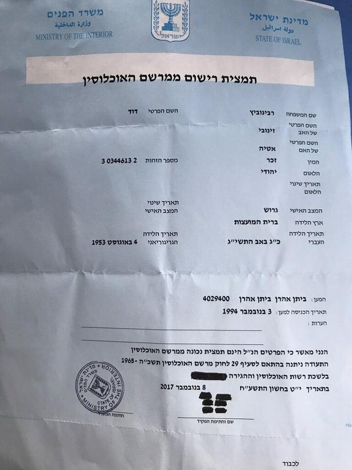 Блогер Василий Крутчак опубликовал копии документов из МВД Израиля, где Рабинович зарегистрировался еще в 1994 году, когда репатриировался вместе с женой. Потом ей и детям дали гражданство, автоматически израильский паспорт выдали и Рабиновичу.