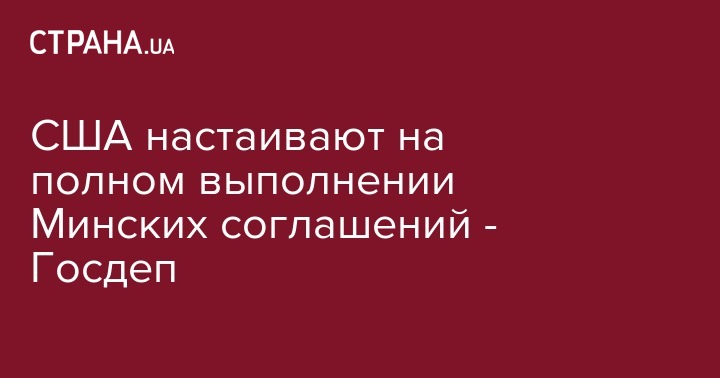 США настаивают на полном выполнении Минских соглашений - Госдеп