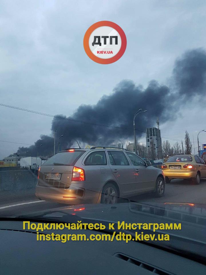 "Пожар в Агромате на Булаховского. Дым виден со всего района", - сказано в сообщении.