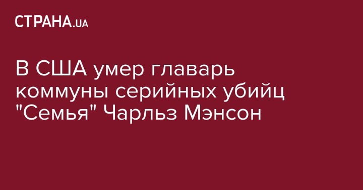 В США скончался знаменитый серийный убийца Чарльз Мэнсон, отбывавший пожизненное заключение. Ему было 83 года.