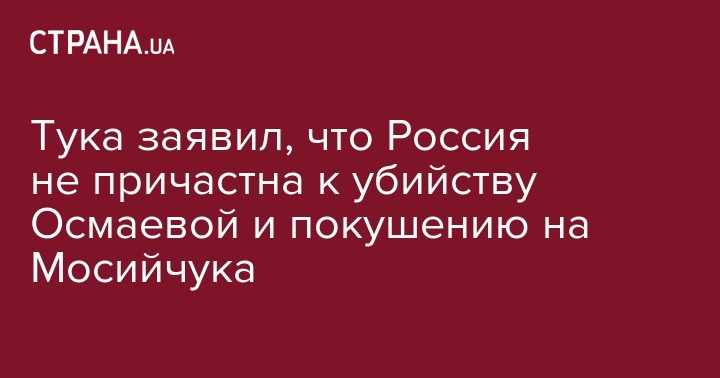 "Нет. Я так не считаю (что Россия причастна к резонансным преступлениям в Украине, - Прим.Ред.). И у меня была встреча с одним человеком, который подтвердил, что к последним событиям наш "старший брат" никакого отношения не имеет…Я имею в виду непонятный взрыв у телеканала "Эспрессо" и прискорбное убийство Амины Окуевой", - заявил Тука.