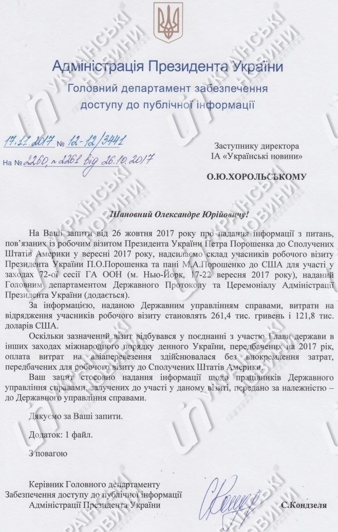 Об этом говорится в ответе Администрации президента Украины на запрос "Украинских новостей".