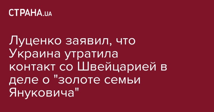 Генеральная прокуратура Украины и швейцарские правоохранители утратили контакт относительно  460 кг золота, которое принадлежит одному из членов окружения бывшего Президента Украины Виктора Януковича.