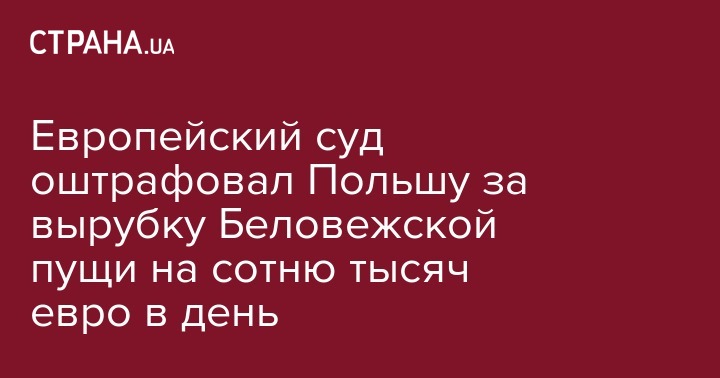 Польшу обязали платить Еврокомиссии (ЕК) 100 тыс. евро штрафа ежедневно, пока не прекратит вырубку Беловежской пущи. Об этом говорится в постановлении суда Евросоюза, принятом в понедельник, пишет "ТАСС".