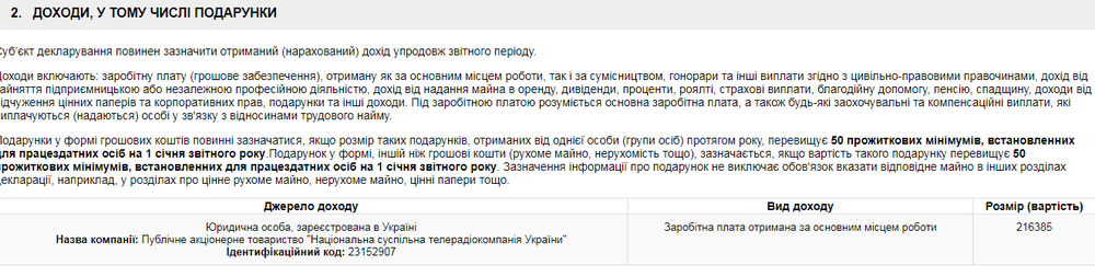 Глава Национальной общественной телерадиокомпании задекларировал зарплату в 216 000