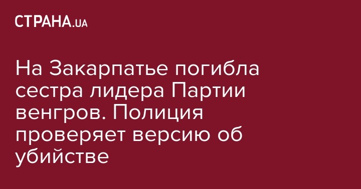 На Закарпатье погибла сестра лидера Партии венгров. Полиция проверяет версию об убийстве