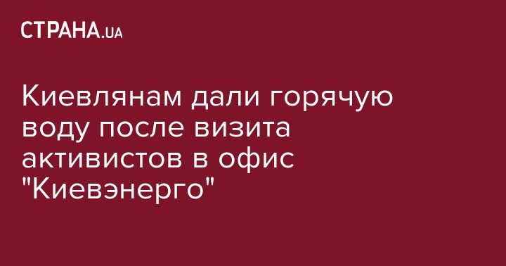 Компания "Киевэнерго" обеспечила подачу горячей воды в некоторые столичные дома после того, как 12 жителей Киева пришли в офис компании. Активисты требовали включить горячую воду. Об этом написала участница акции Екатерина Тимченко в Facebook.