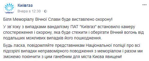 В то же время "Киевгаз" на своей странице в Facebook сообщил, что уже установил камеру и выставил охрану у памятника.