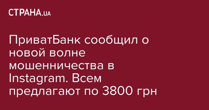 ПриватБанк сообщил о новой волне мошенничества в Instagram. Всем предлагают по 3800 грн