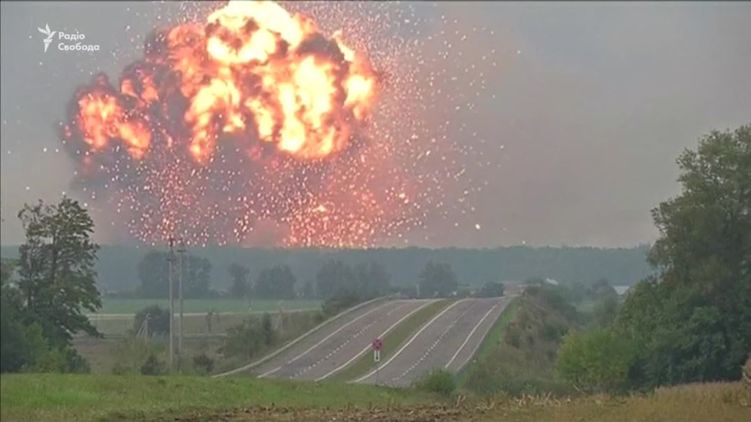 Тогда, как писала "Страна" на складе в/ч из хранившихся 83 тысяч тонн боеприпасов более трети взлетело на воздух. О ЧП говорила вся Украины - из Калиновки и ее окрестностей была произведена эвакуация населения (30 тыс. человек), перекрыто воздушное и железнодорожное сообщение, ранения получили два человека.