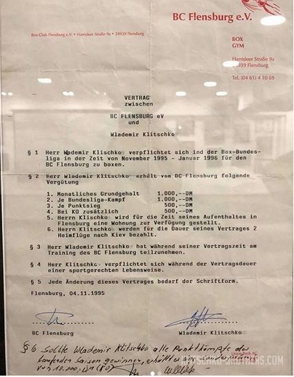 В контракте также было примечание суть которого заключалось в том, что в случае выигрыша всех боев в сезоне Бундеслиги нокаутом, украинец мог получить дополнительное вознаграждение - 10 000 дойчмарок.