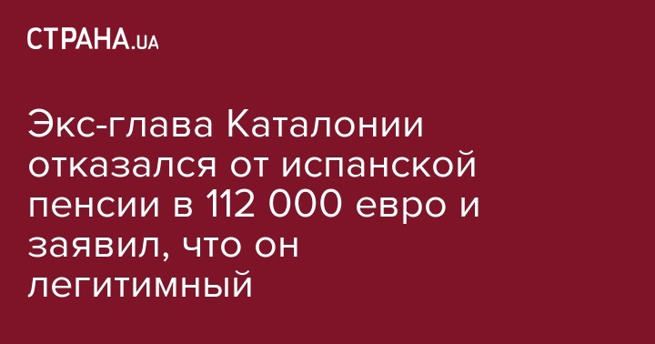 Согласно законам Каталонии, Пучдемон в качестве экс-главы Женералитета мог бы ежегодно получать пенсию в размере 112 тысяч евро на протяжении четырех лет, что составляет 80% от оклада, получаемого им до ухода с поста.