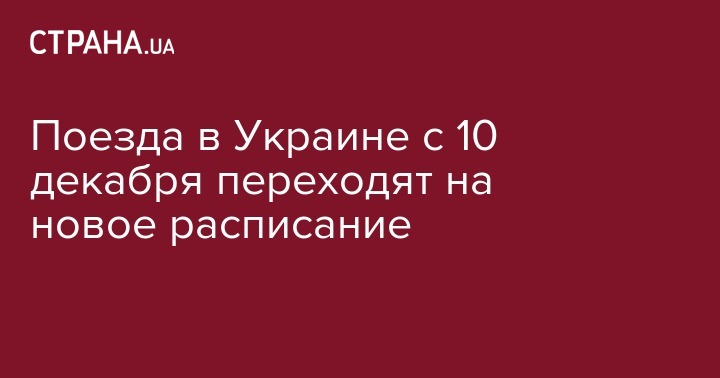 В Украине с 10 декабря пассажирские поезда переходят на новое расписание. Об этом сообщает пресс-служба "Укрзализныци" в Facebook.