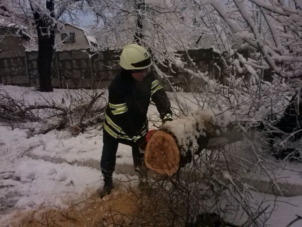В Лисичанске из-за сильного снегопада начали падать деревья, в результате чего была необходима помощь спасателей. Такая же ситуация в Новодружевске и Приволье.