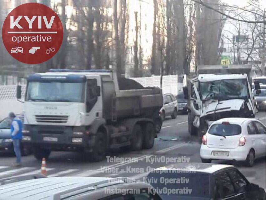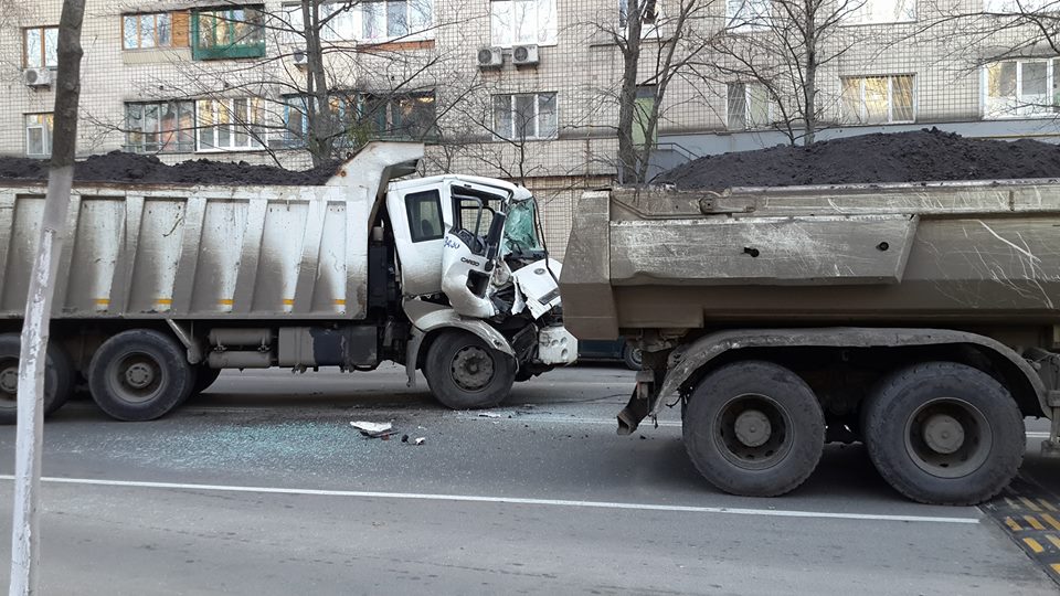 Два грузовика с землей столкнулись у полицейской академии в Киеве