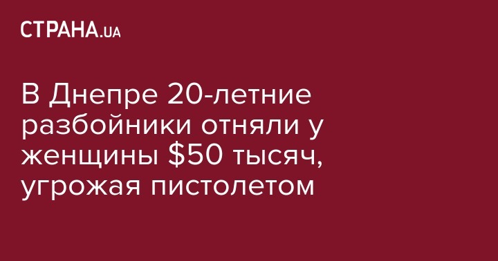В Днепре 20-летние разбойники отняли у женщины $50 тысяч, угрожая пистолетом