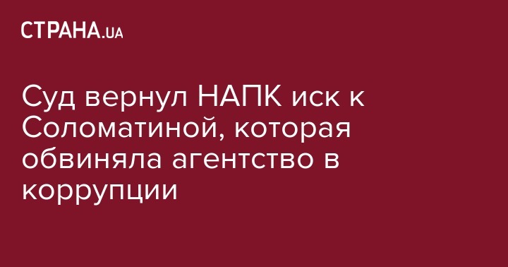 Шевченковский районный суд Киева вернул Национальному агентству по предупреждению коррупции (НАПК) иск о защите деловой репутации к бывшей сотруднице Анне Соломатиной из-за того, что он должен быть представлен к другому районному суду.